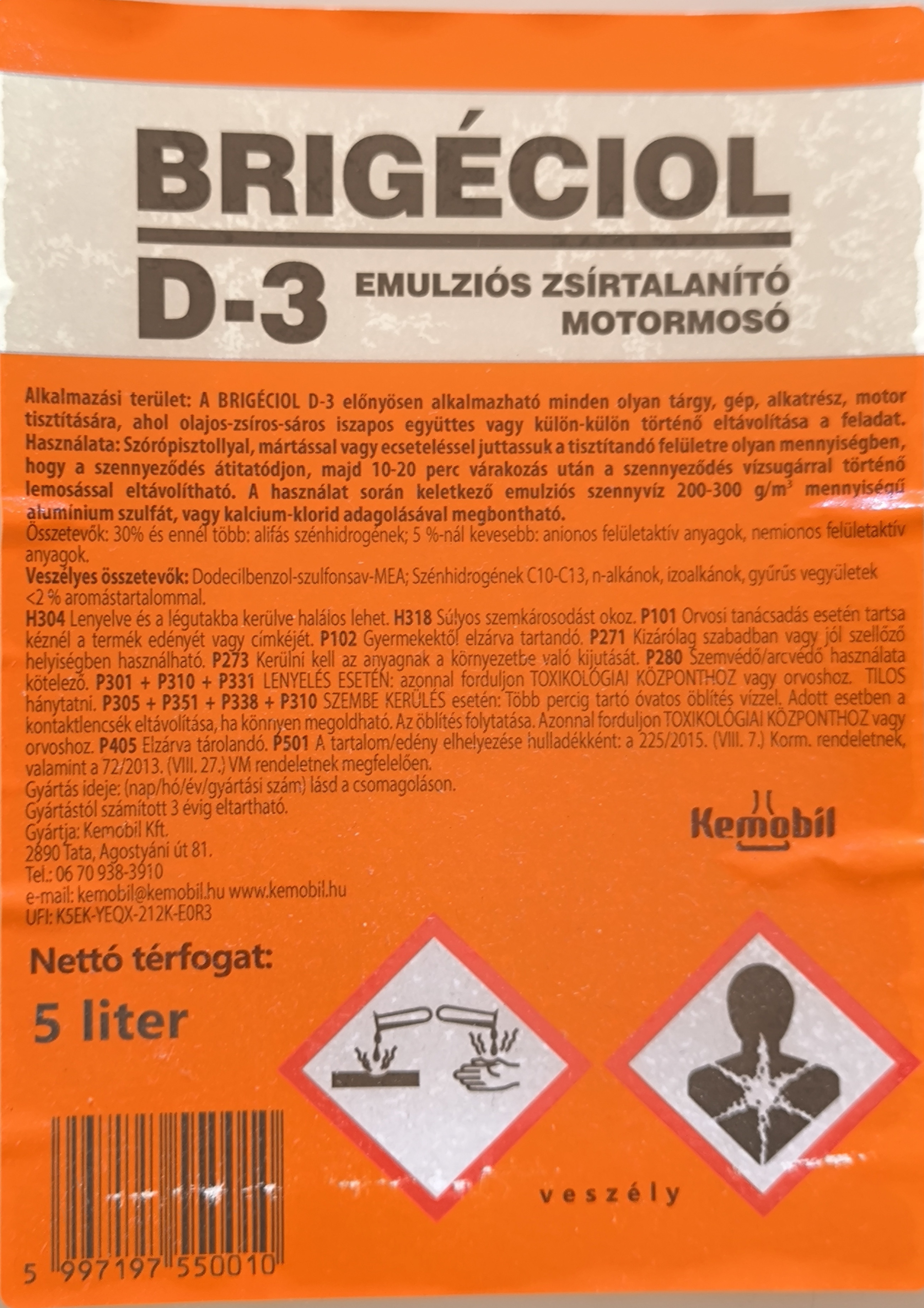 Brigéciol D-3 motormosó erős hatású tisztítószer, amely kiválóan alkalmas olajos és zsíros szennyeződések eltávolítására motorokról, gépalkatrészekről és ipari berendezésekről. Hatékonyan oldja a motorolaj, kenőanyag és zsír maradványokat, így alapos tisztítást biztosít karbantartási és javítási munkák során.