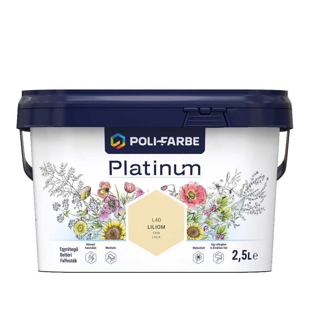 Poli-Farbe Platinum L40 egyrétegű beltéri falfesték - liliom - 2,5 l részletes leírása