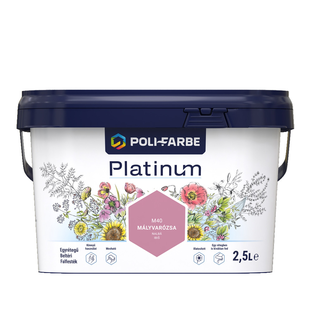 Poli-Farbe Platinum M40 egyrétegű beltéri falfesték - mályvarózsa - 2,5 l részletes leírása