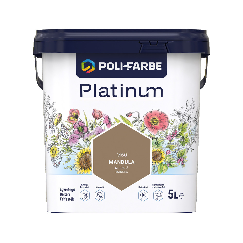 Poli-Farbe Platinum M60 egyrétegű beltéri falfesték - mandula - 5 l részletes leírása
