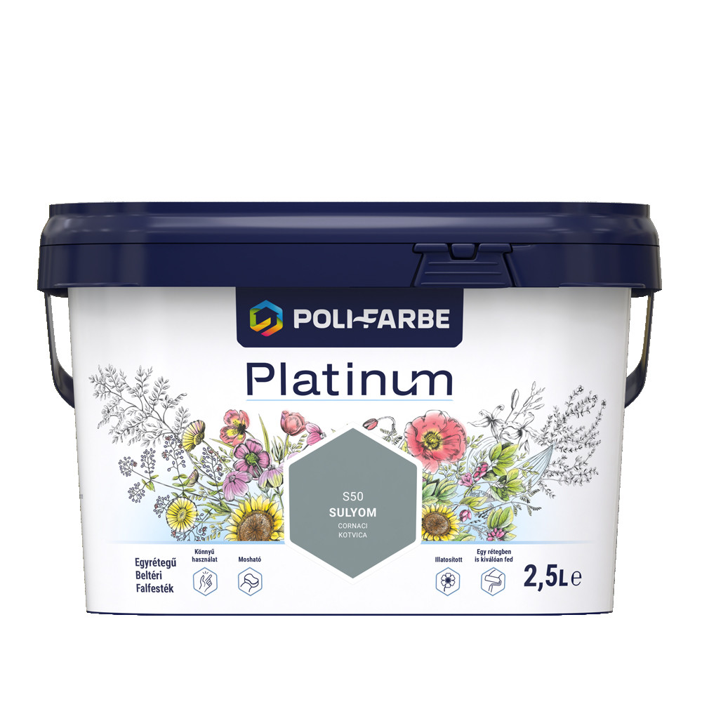 Poli-Farbe Platinum S50 egyrétegű beltéri falfesték - sulyom - 2,5 l részletes leírása