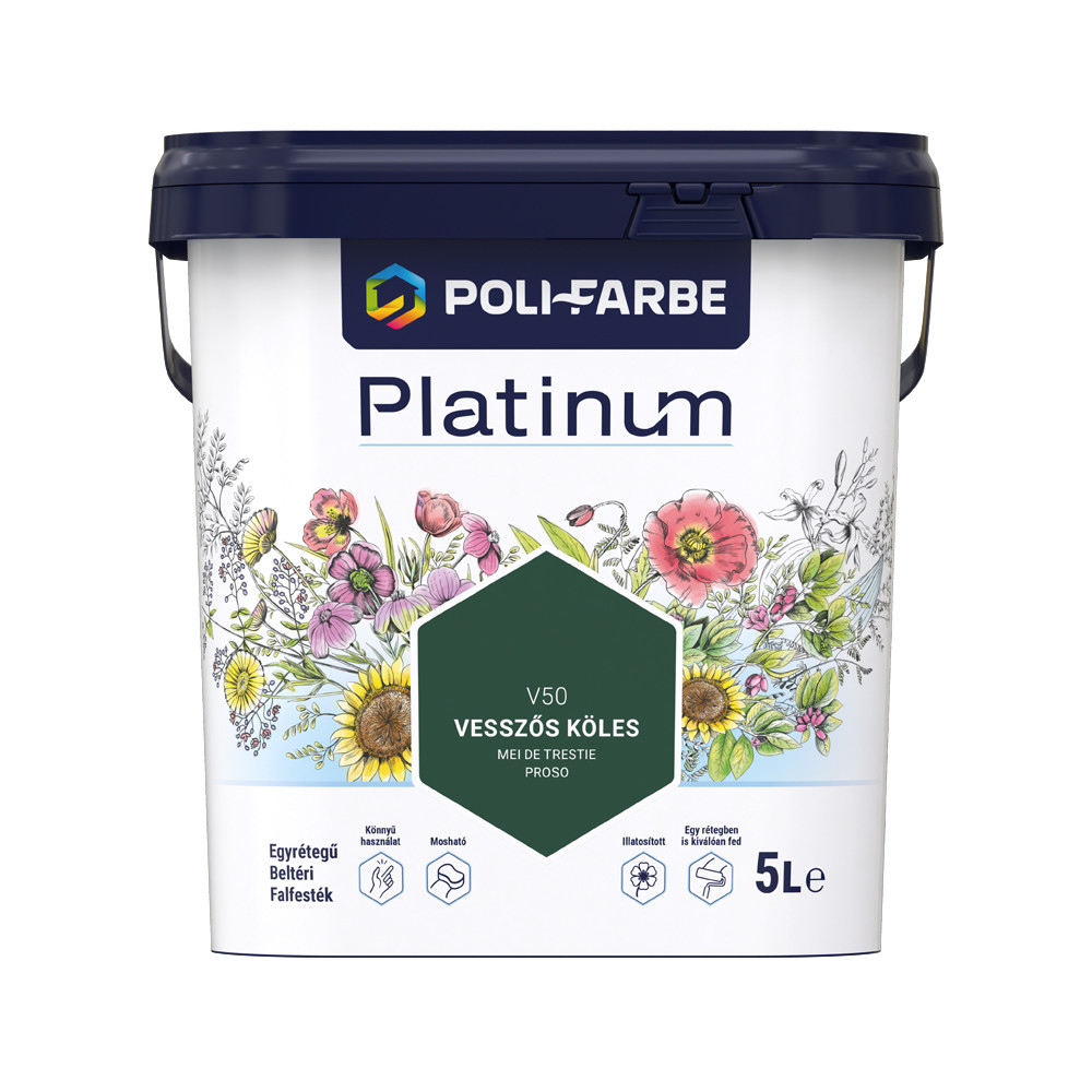 Elakadt a termékválasztásban? Több információra lenne szüksége a választáshoz? Esetleg kérdése van Poli-Farbe Platinum V50 egyrétegű beltéri falfesték - vesszős köles - 5 l