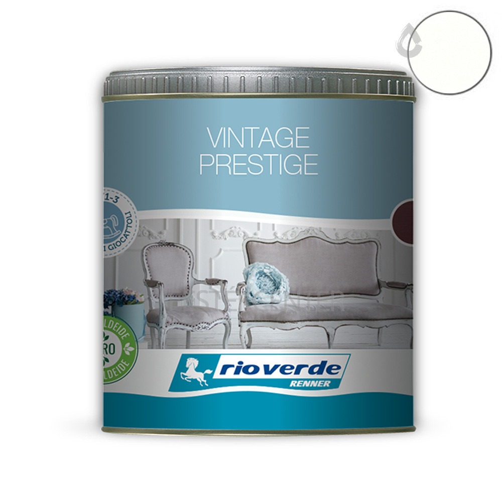 A Vintage Prestige az az extramatt festék, mellyel shabby chic, decapé, antikolt és etnikus effekt készíthető. Olyan fedőbevonat, mely az első rétegtől kezdve mély, anyagszerű hatást kelt. Nagy fedőképességgel, és erős tapadással bír mindenféle felületen. Nincs szükség csiszolásra, festékeltávolításra vagy primer alapozásra. Vizes bázisú, szagtalan, csekély VOC tartalmú festék, ezért beltéri használatra ideális. A Vintage Prestige mosható felületet képez. Felhordása két rétegben javasolt. HASZNÁLATI UTASÍTÁSA pergő részeket távolítsuk el, majd P150-P180 csiszolóvászonnal csiszoljunk át a felületet. Acetonnal végzett zsírtalanítást