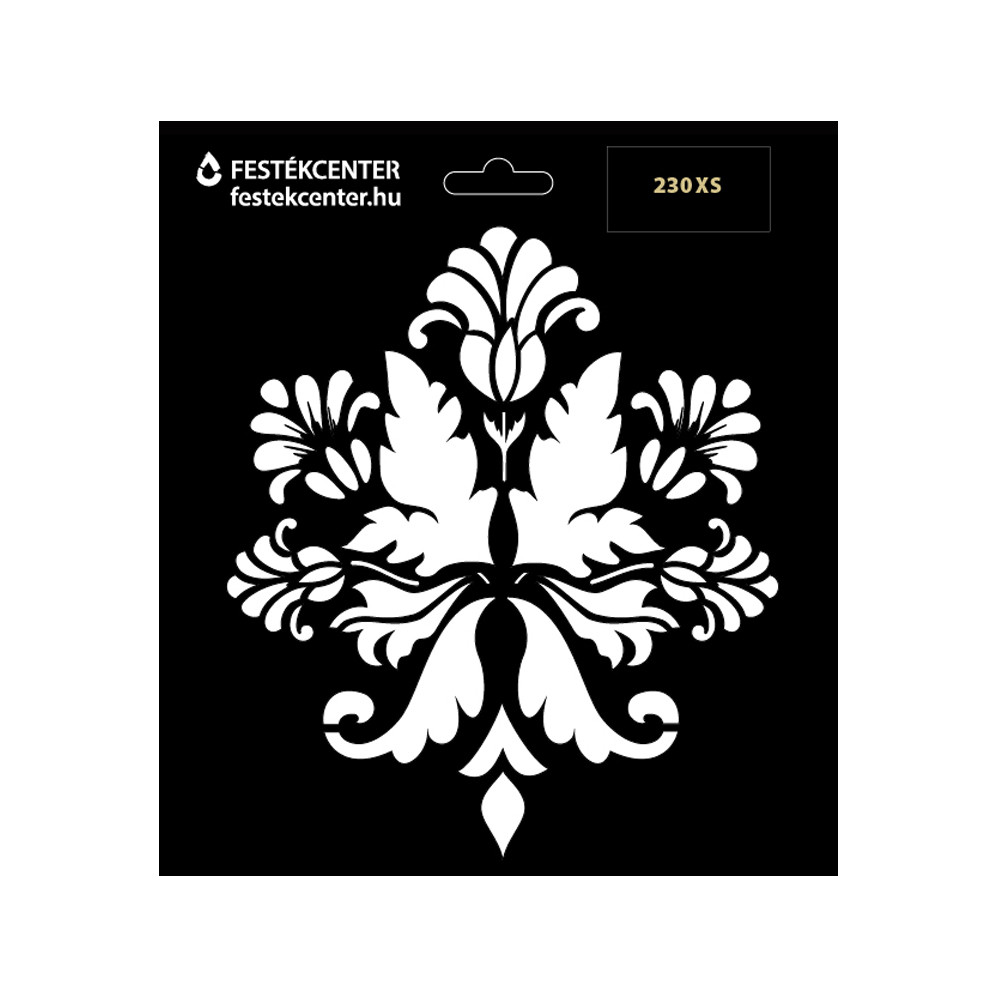 Saját gyártású, 250 mikron vastagságú festési sablon rugalmas anyagból, pontos és ismételhető mintázattal.Alkalmas glettel vagy dekorációs pasztával történő faldekorációhoz, stencilpasztás bútorfestéshez, valamint textilfestékkel végzett textil dekoráláshoz.
